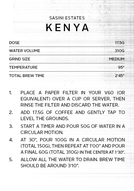 Rarely do you come across a naturally processed Kenyan coffee, and this one is unique. It exhibits all the flavours we love in a classic washed Kenyan, but deeper and sweeter. Packed with purple fruits like grape, blackcurrant, blackberry and wine, its flavours are deep and weighty.