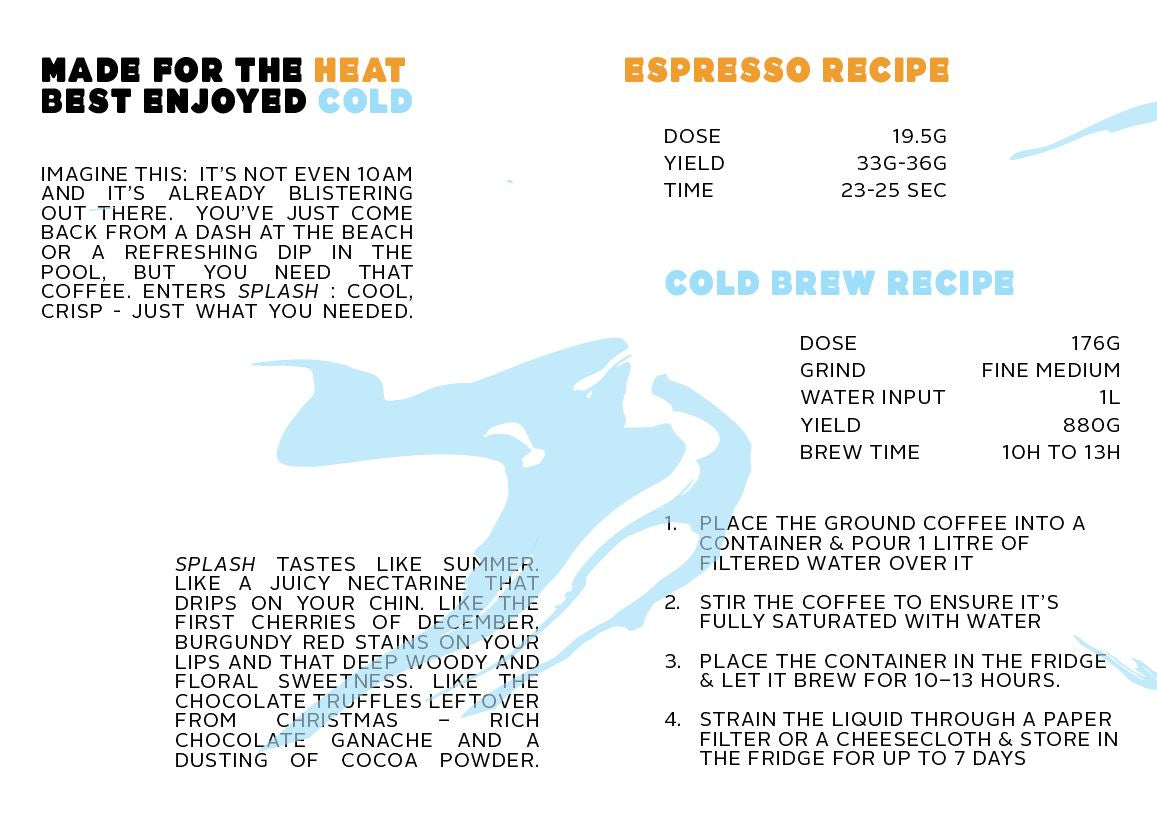 Imagine this: it’s not even 10 am and it’s already blistering out there. You’ve just come back from a dash at the beach or a refreshing dip in the pool, but you need that coffee. Enters Splash : cool, crisp – just what you needed.